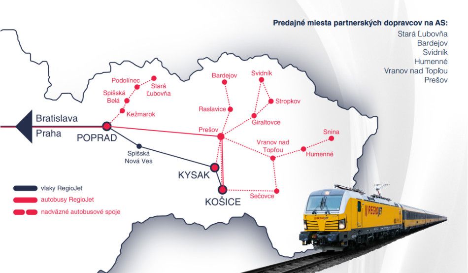 RegioJet napojil destinace na východním Slovensku na vlaky RegioJet