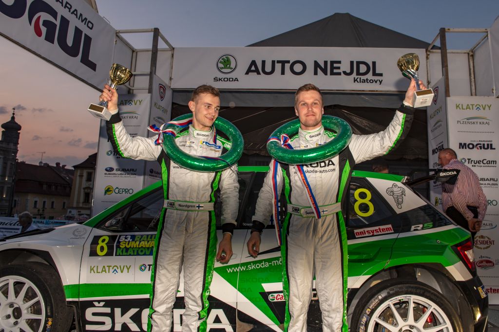 Rallye Šumava Klatovy: Jan Kopecký s vozem ŠKODA vyhrál, týmový kolega Juuso Nordgren třetí
