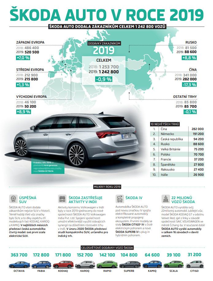 ŠKODA AUTO dodala v roce 2019 1,24 milionu vozů